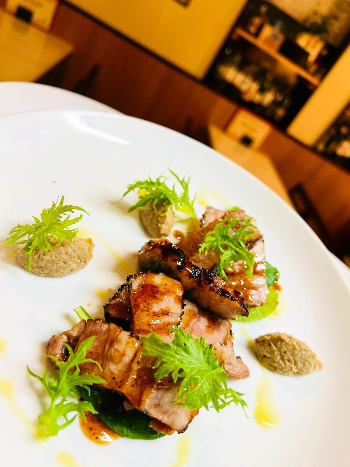 本日のオススメ料理👨🍳 本日のオススメ料理👨🍳#豚バラ肉のグリル焼き#あん肝のテリーヌ#青唐辛子ピザランチ、ディナー共に空きあります❣️ご来店お待ちしております😊お問い合わせはこちら🤙0942-64-9529#ちくご#筑後#筑後ディナー…